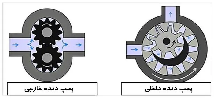 - هر دو نوع پمپ از دو چرخ دنده تشکیل شده اند که با چرخش، سیال را بین دندانههای خود کشیده و به سمت خروجی پمپ هدایت میکنند.