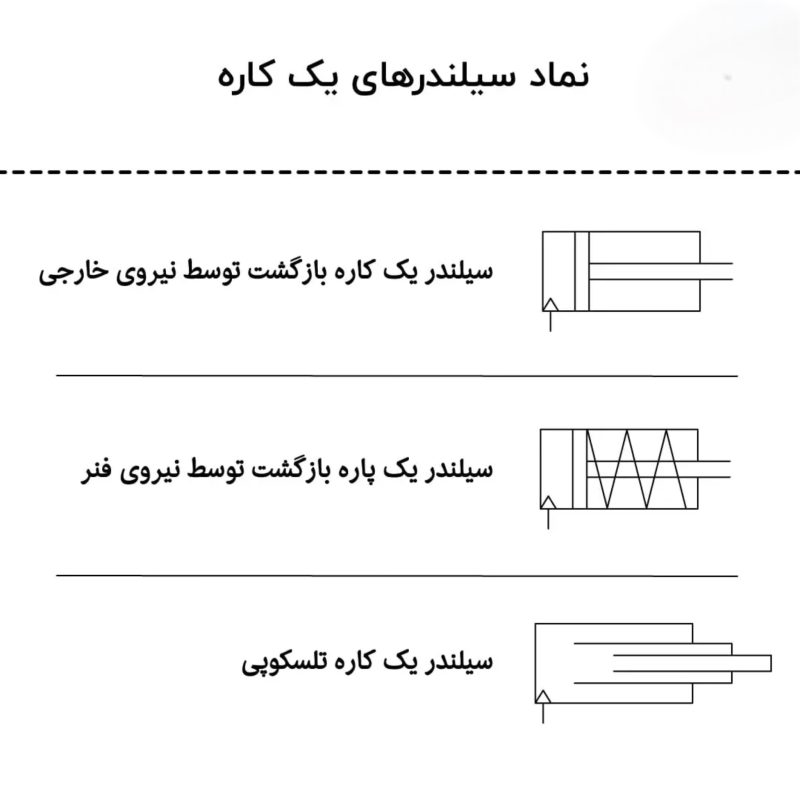 - سیلندر یک کاره: تنها یک طرف پیستون تحت فشار قرار می گیرد.